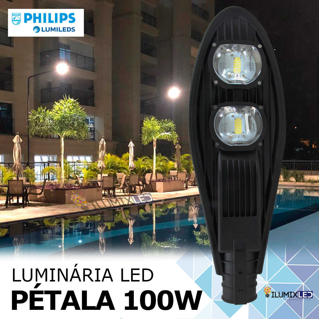 LUMINÁRIA LED PÚBLICA PÉTALA 100W - ALTA POTÊNCIA - LINHA PREMIUM - 5 ANOS DE GARANTIA
